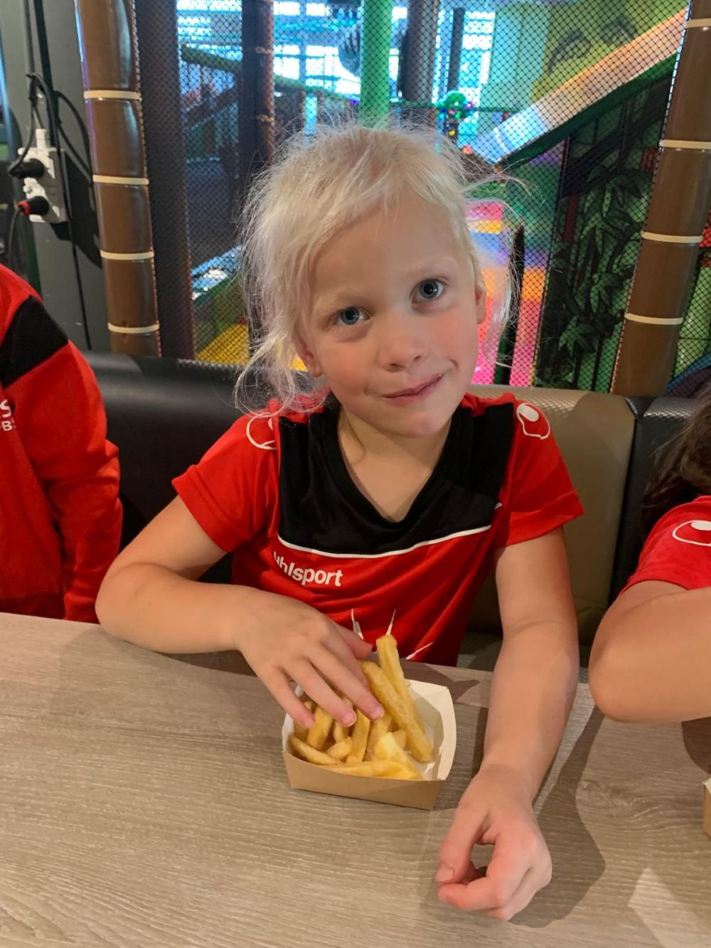 De week liep inmiddels op z’n einde, maar dat betekende niet dat het plezier minder werd. Integendeel het was opnieuw een dag vol avontuur en beweging. We splitsten de groep op, zodat ieder kind kon genieten van een uitje dat bij hem of haar paste. De jongste kinderen gingen naar het vrolijke Monkey Town 🐵, waar ze konden klimmen, springen, glijden en rollen over allerlei leuke toestellen. Er werd volop gespeeld en gelachen, en als lunch mochten de kinderen frietjes eten 🍟 – iets waar natuurlijk niemand nee tegen zei. Ondertussen gingen de oudere kinderen samen met locatie Zevenbergen naar het zwembad 🏊‍♀️ in Zevenbergen. Voor veel kinderen was dit een nieuwe ervaring, en juist dat maakte het extra speciaal. Er werd gezwommen, gespetterd, gedoken en gegleden. De sfeer was gezellig en ontspannen, en het plezier was duidelijk te zien in de stralende gezichten. Beide groepen beleefden ieder op hun eigen manier een fantastische dag vol activiteit, vriendschap en vrijheid.