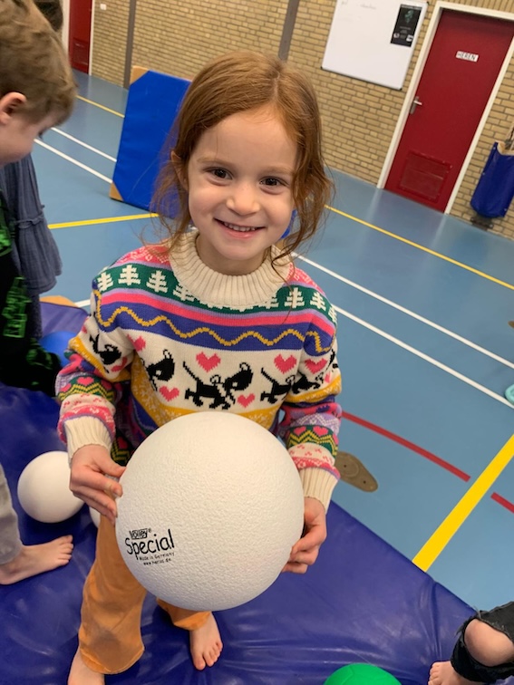 De volgende dag startten we met een stukje fruit 🍎 en oefenden we in de gymzaal een klein pietenparcours.