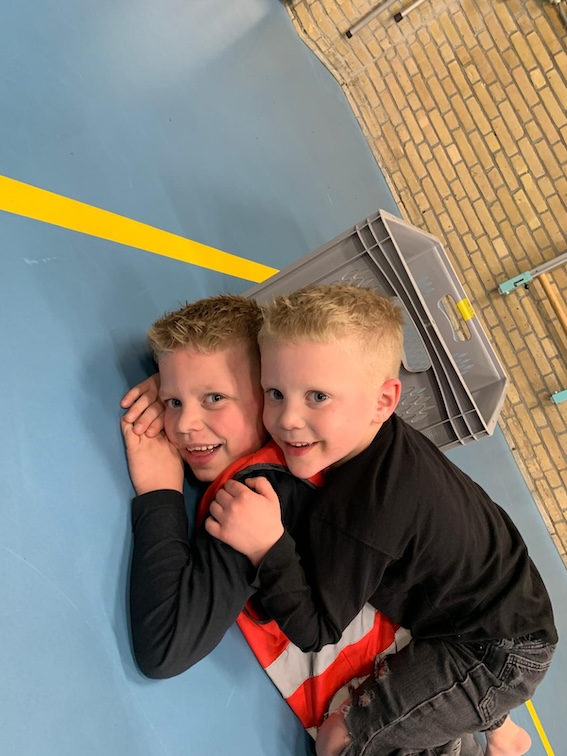 Dinsdag sportten we bij De Hasselbraam in drie vakken: poorttikkertje, trefbal en iemand is ’m, niemand is ’m.