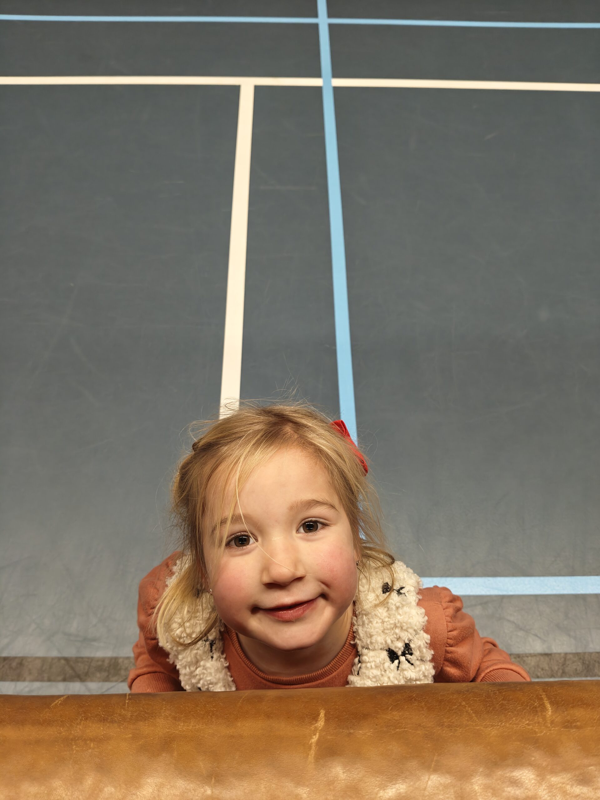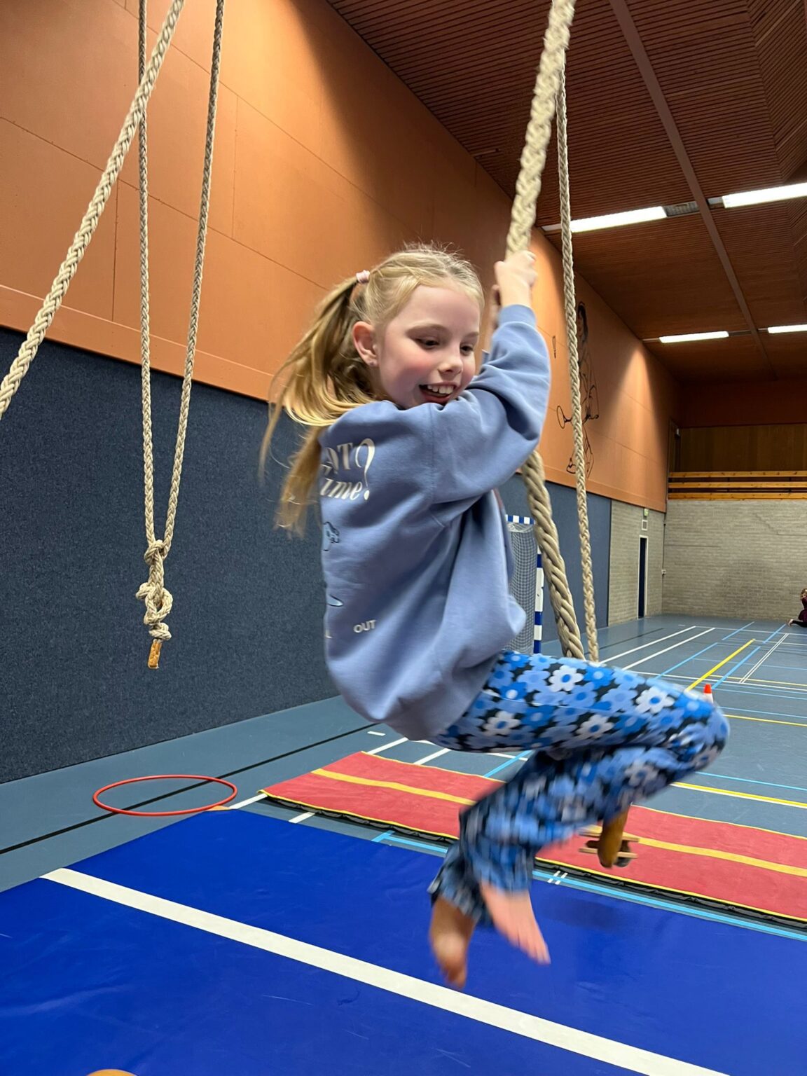 De hele gymzaal stond vol met toffe obstakels zoals touwen om in te zwaaien, kasten om overheen te klimmen en het wandrek om in te klimmen — en nog veel meer!