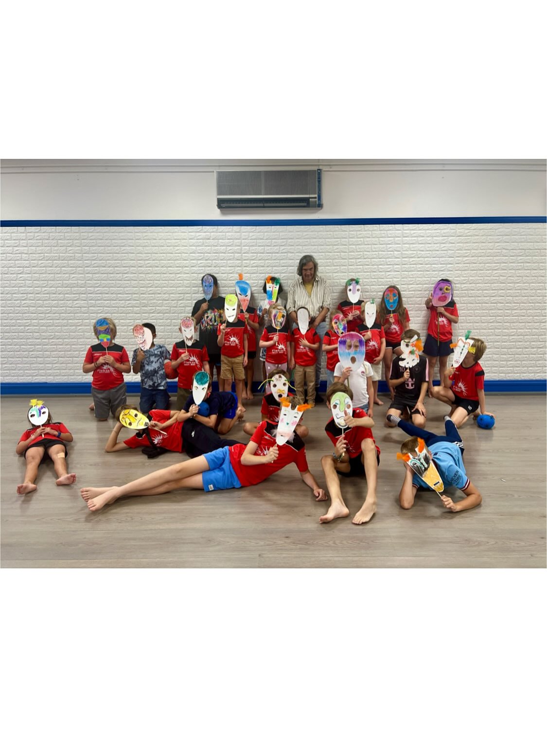 Daarna maakten we Afrikaanse maskers met allerlei verschillende materialen 🎨✂. Iedereen had zijn eigen ideeën en zo ontstonden er hele bijzondere kunstwerken 🎭. Toen de maskers klaar waren, bedachten we er samen een toneelstukje bij en mochten we optreden – wat een plezier! 🎬👏