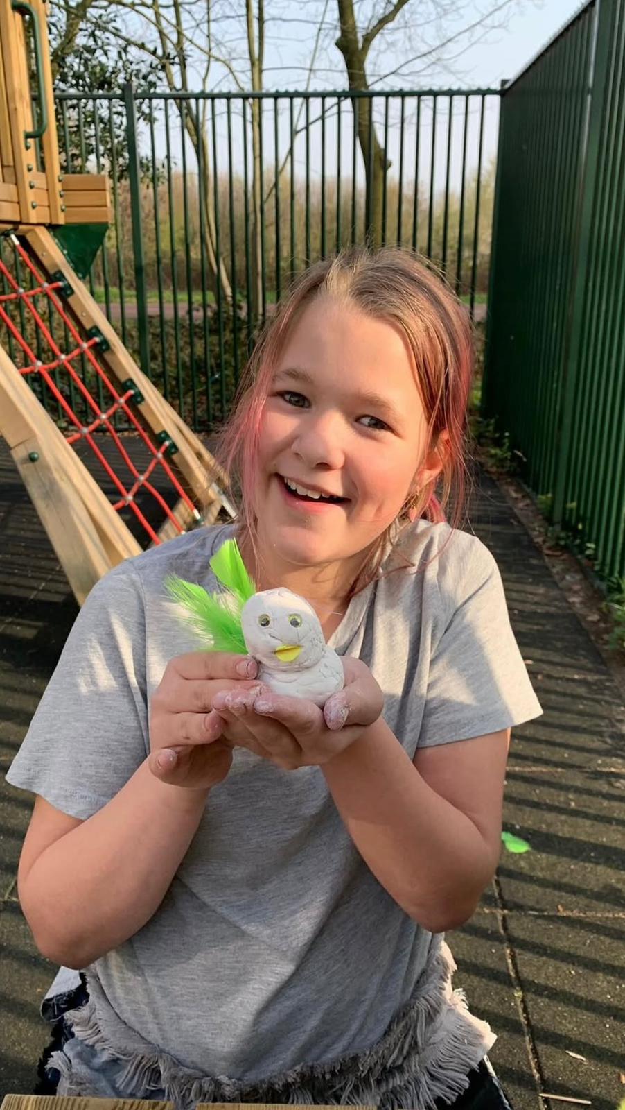 Ook zijn we creatief aan de slag gegaan. We maakten vrolijke paastasjes en hebben van klei super schattige kuikentjes geknutseld. 🐥🎨