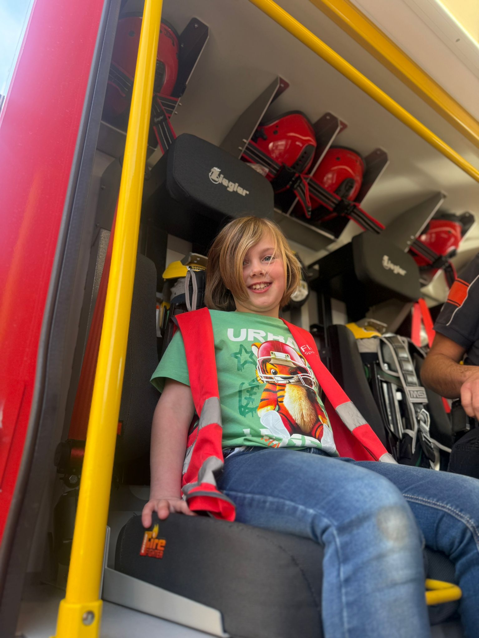 Als afsluiting hebben we de speciale brandweerpakken bekeken. Die zagen er stoer uit en we leerden dat ze de brandweermensen beschermen tegen hitte en vuur. 🧑🚒