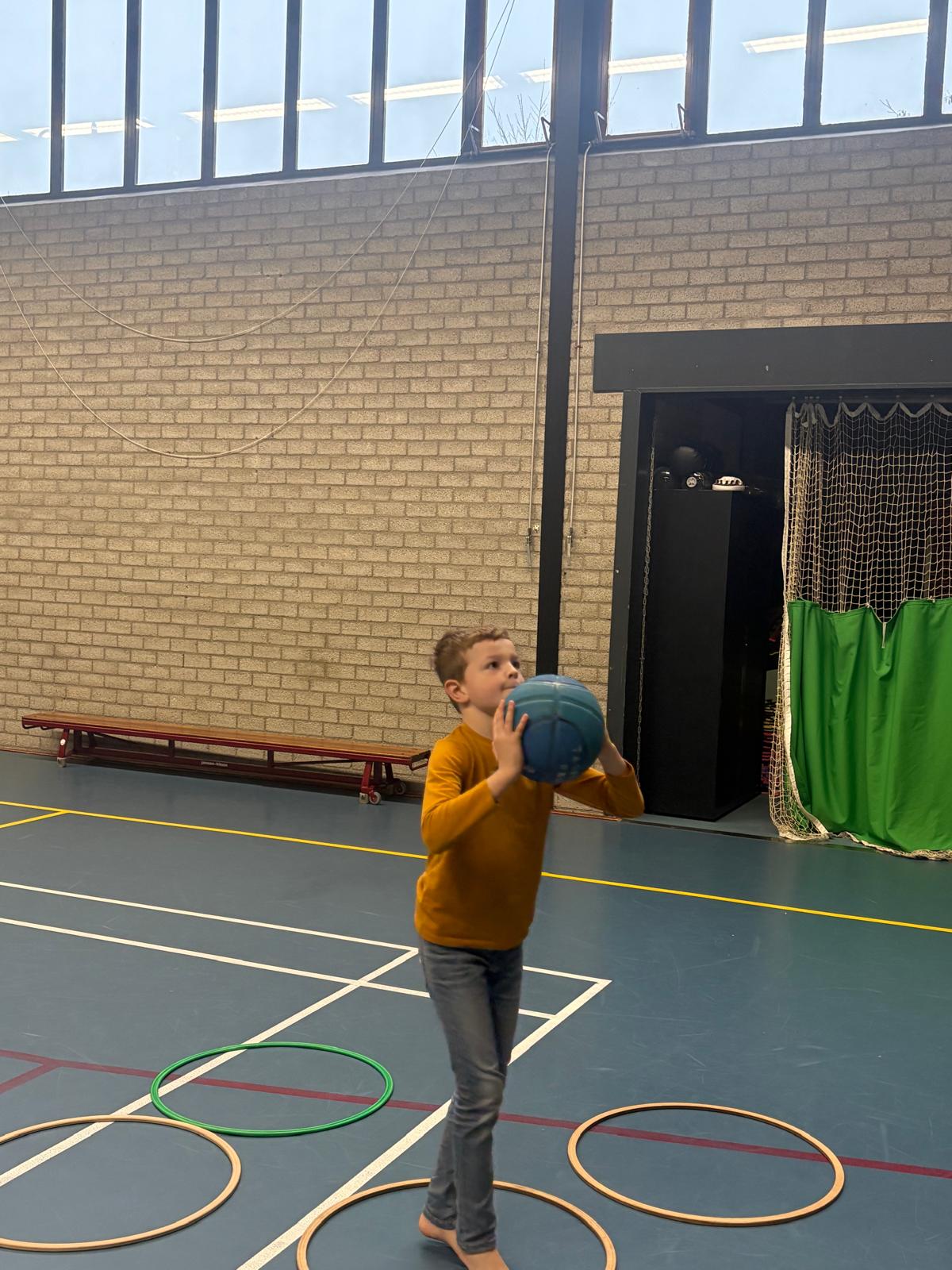 De laatste week van januari was lekker afwisselend, met een mooie mix van sportieve en creatieve activiteiten. We begonnen de week actief in de gymzaal met ringhockey en het oefenen van salto’s. Op woensdag regende het helaas flink, waardoor buiten spelen niet mogelijk was. Gelukkig konden we binnen onze creativiteit kwijt. Samen schilderden we op een groot canvas en in de blokkenbak werd een enorm kasteel gebouwd, waarin enthousiast riddertje werd gespeeld 🏰🎨.