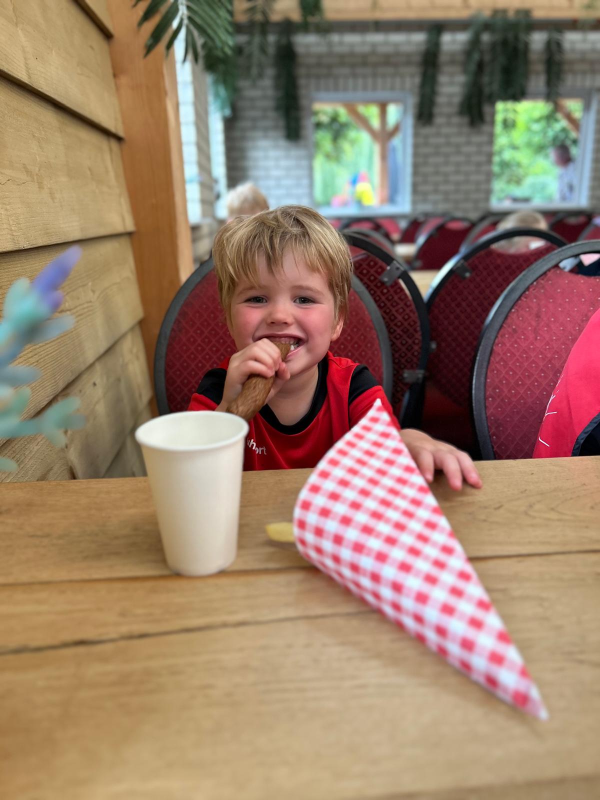 Vandaag staat er een uitje naar Haasje Over gepland🤩. Maar voordat we vertrekken is het tijd voor een glaasje ranja en een lekker koekje🍪.