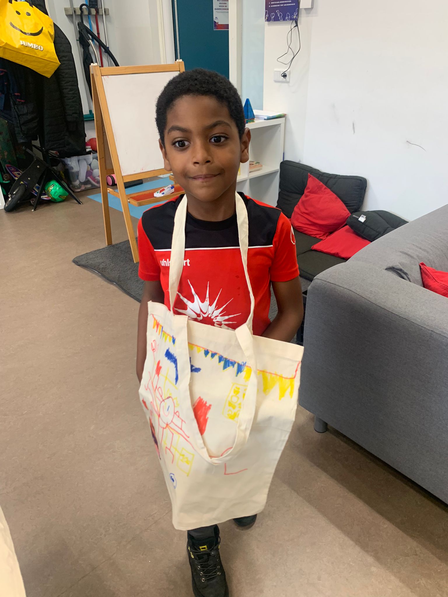 In de ochtend speelden we het spannende spel Zoek de Vlag. De kinderen renden fanatiek over het veld en werkten samen om de vlag van de tegenstander te veroveren. Na al dat rennen was het tijd voor iets creatiefs: eigen tassen versieren en kleuren! Iedereen maakte zijn tas uniek met mooie kleuren en stoere ontwerpen. Natuurlijk namen we ook een moment om samen lekker te genieten van vers fruit🍏. Daarna hebben we heerlijk gechilld en gekletst om de dag gezellig af te sluiten. Wat een dag vol actie en creativiteit!