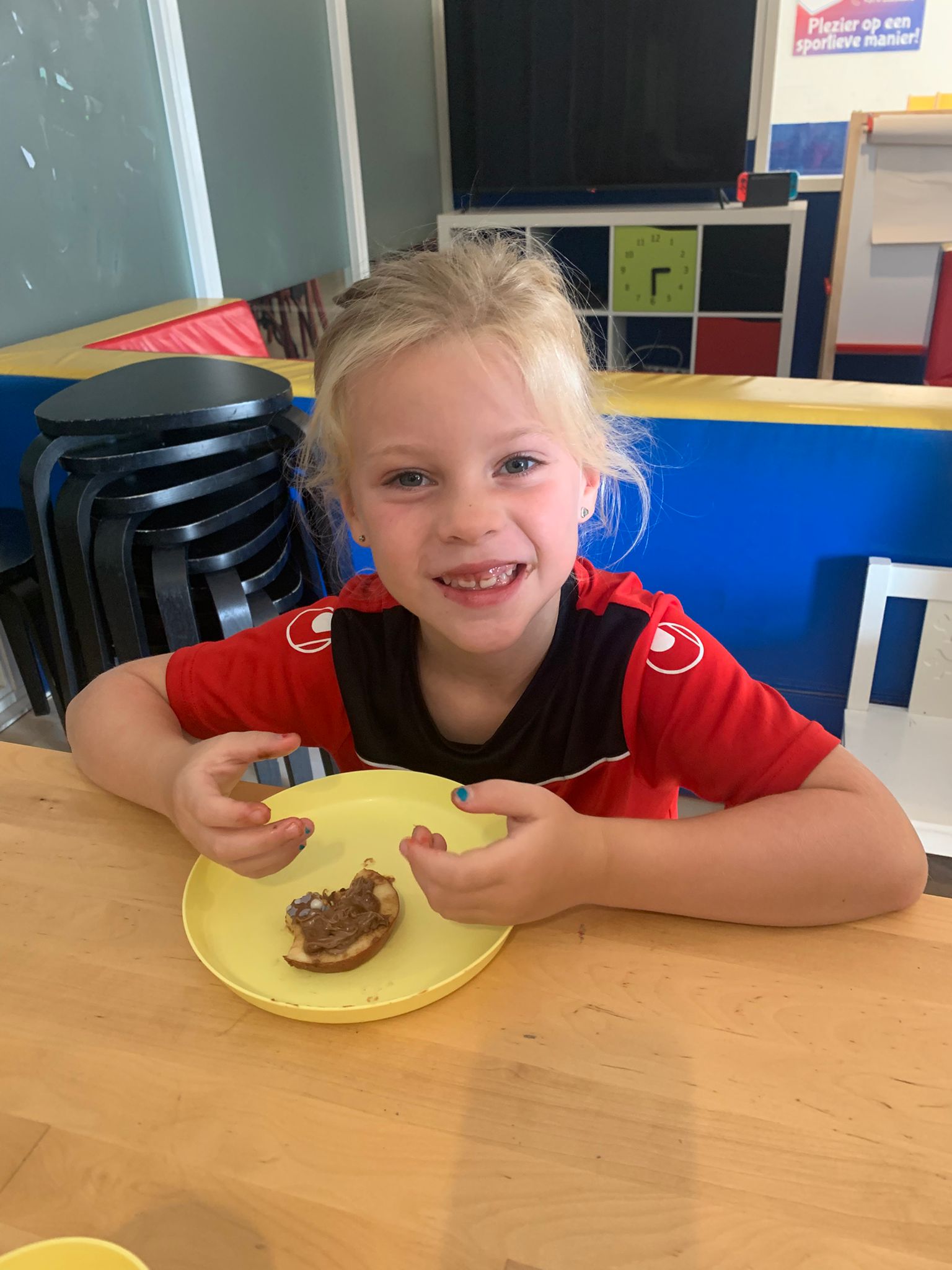 De een-na-laatste dag van deze fantastische 🤩 derde week van de vakantie! In de ochtend hebben we heerlijke appel-donuts 🍎🍩 gemaakt. De kinderen kregen allemaal twee appelschijfjes die ze zelf mochten versieren. Ze konden kiezen uit pasta, speculoos, appelstroop, jam en pindakaas. En natuurlijk mochten ze ook versiersels gebruiken. Ze waren heerlijk 😋! ’s Middags hebben we samen geluncht. Vandaag waren kaas 🧀 en hagelslag favoriet, hihihi 😄.