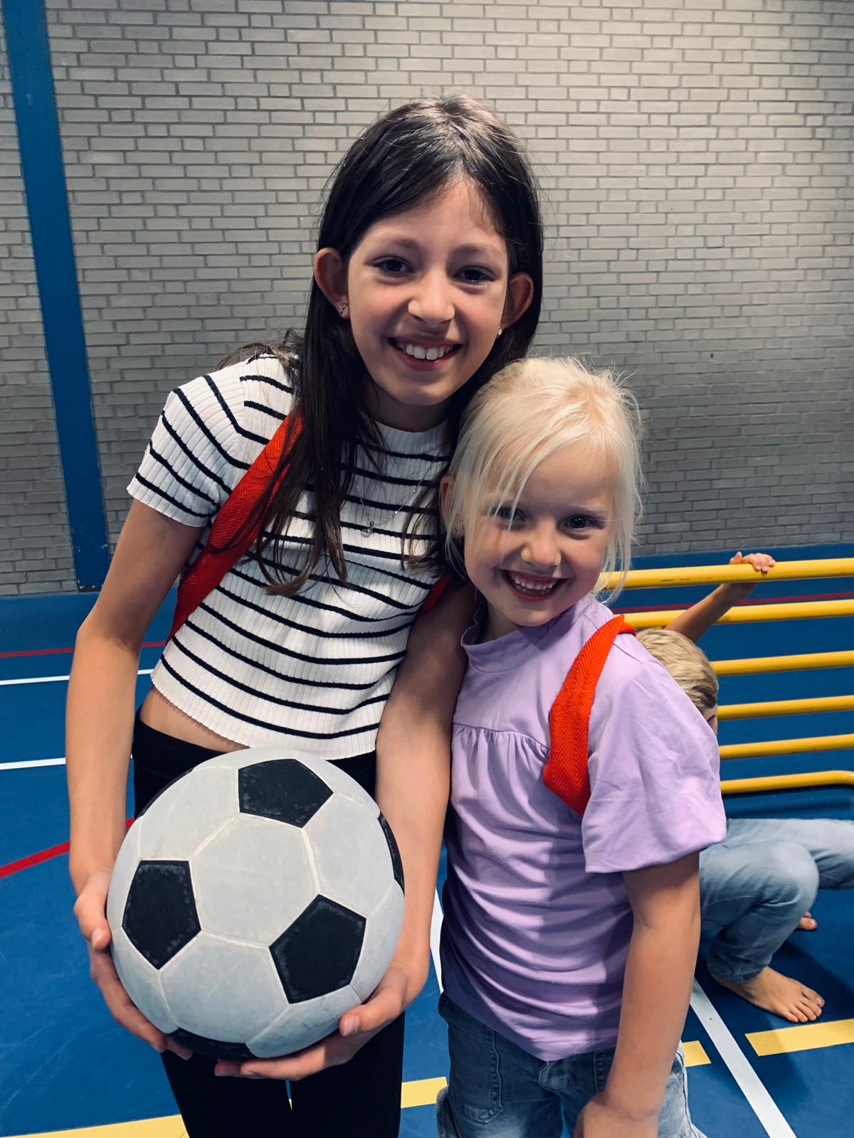 Meneer Daan had samen met twee kinderen een sportieve en gezellige gymles voorbereid. Helaas was het hun laatste dag, dus ze mochten meedenken over de invulling van de les. 😁