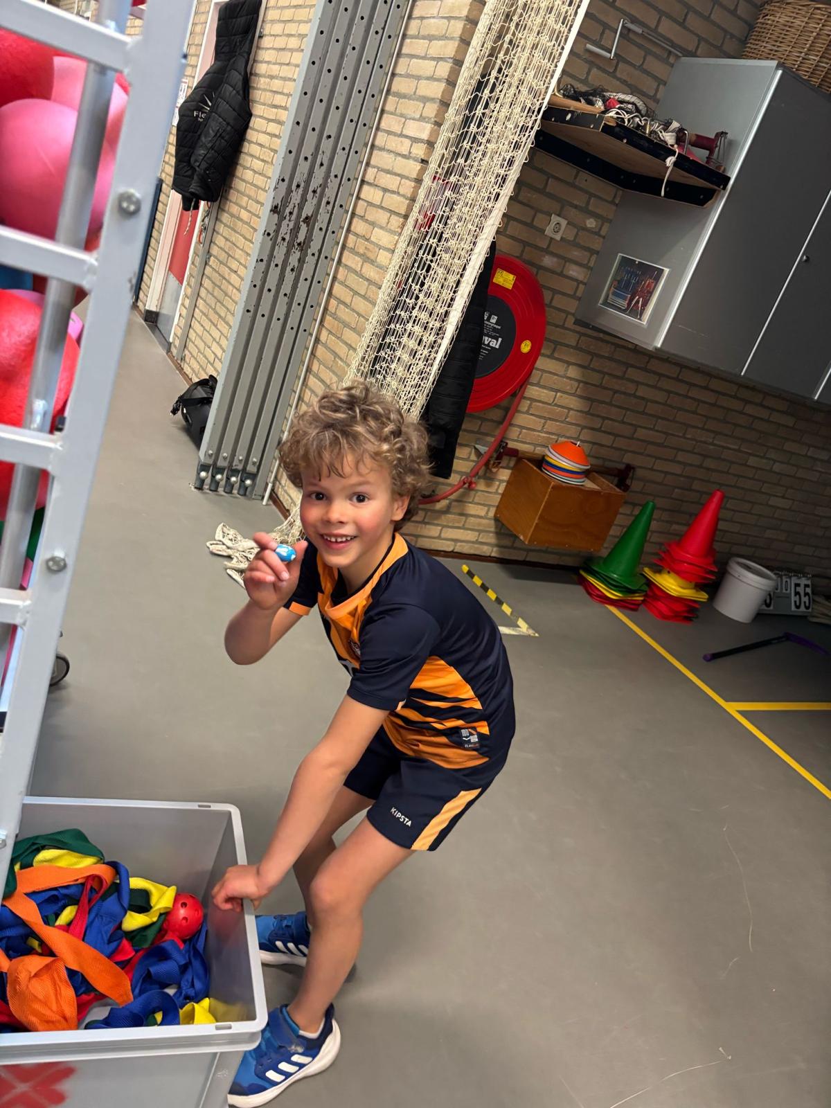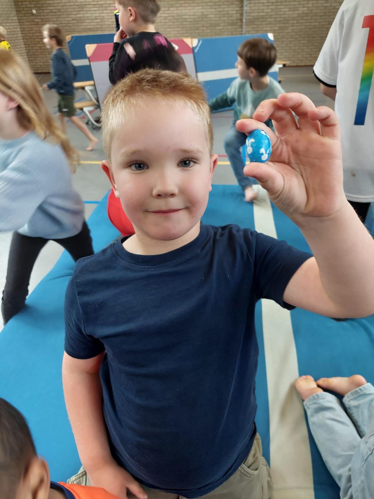 We gingen vandaag naar de gymzaal. Maar voordat we het spannende spel Tien tellen in de rimboe speelden, mochten de kinderen eerst op zoek naar chocolade paaseitjes die verstopt waren. Wat een feest! Met volle concentratie werd er gezocht, gevonden en natuurlijk… lekker gesmuld. Daarna nog even actief bewegen in de gymzaal – een mooie balans tussen zoetigheid en sportiviteit.