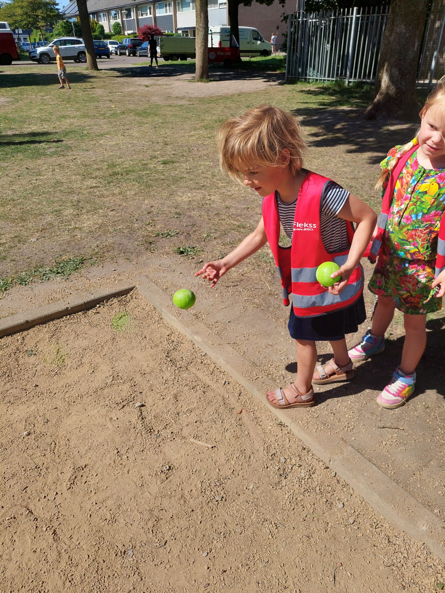 Dinsdag was er een gezellige, volle groep die speelde in de speeltuin met jeu de boules en voetbal.