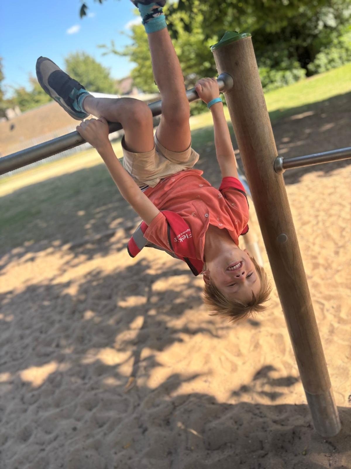 Een sportieve dag vandaag! We gingen naar het sportpark waar meester Glenn leuke oefeningen met ons deed op de trainingstoestellen 🏋️. Daarna verstoppertje spelen met meester Mark (wie kan zich het beste verstoppen? 👀) en gezellig schommelen met juf Sarah. Het was een actieve én gezellige middag waar iedereen van heeft genoten.