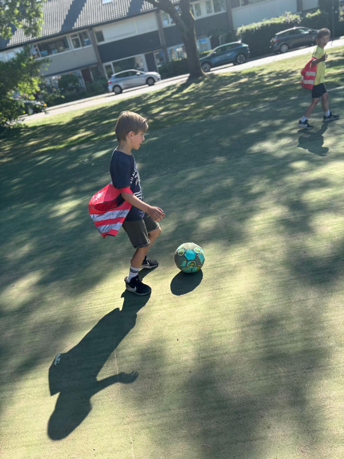 Vandaag hadden we een volle groep kinderen – supergezellig! Met z’n allen gingen we op pad naar het kleine speeltuintje in de buurt. Daar werd volop gespeeld: een potje jeu de boules 🎯, schommelen en natuurlijk voetbal! ⚽ De lachende gezichten spraken boekdelen. Buiten spelen met z’n allen blijft toch het allerleukst!