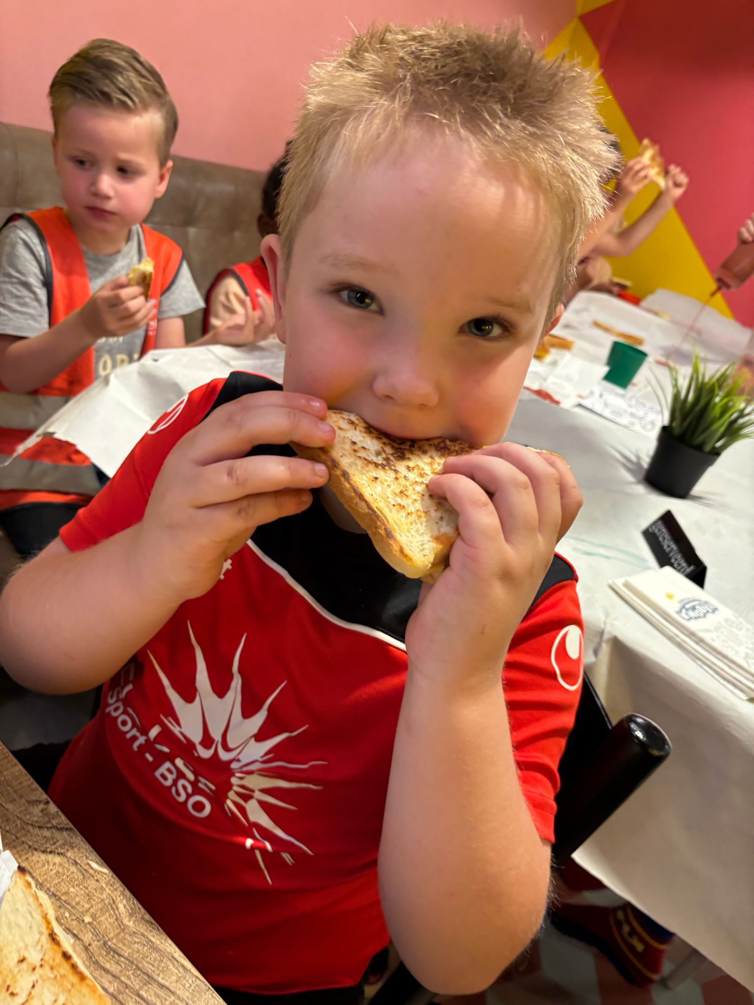 Tussen het springen door genoten we van een lekkere tosti 🥪😋, waarna ze niet konden wachten om weer terug te stuiteren! ⚡