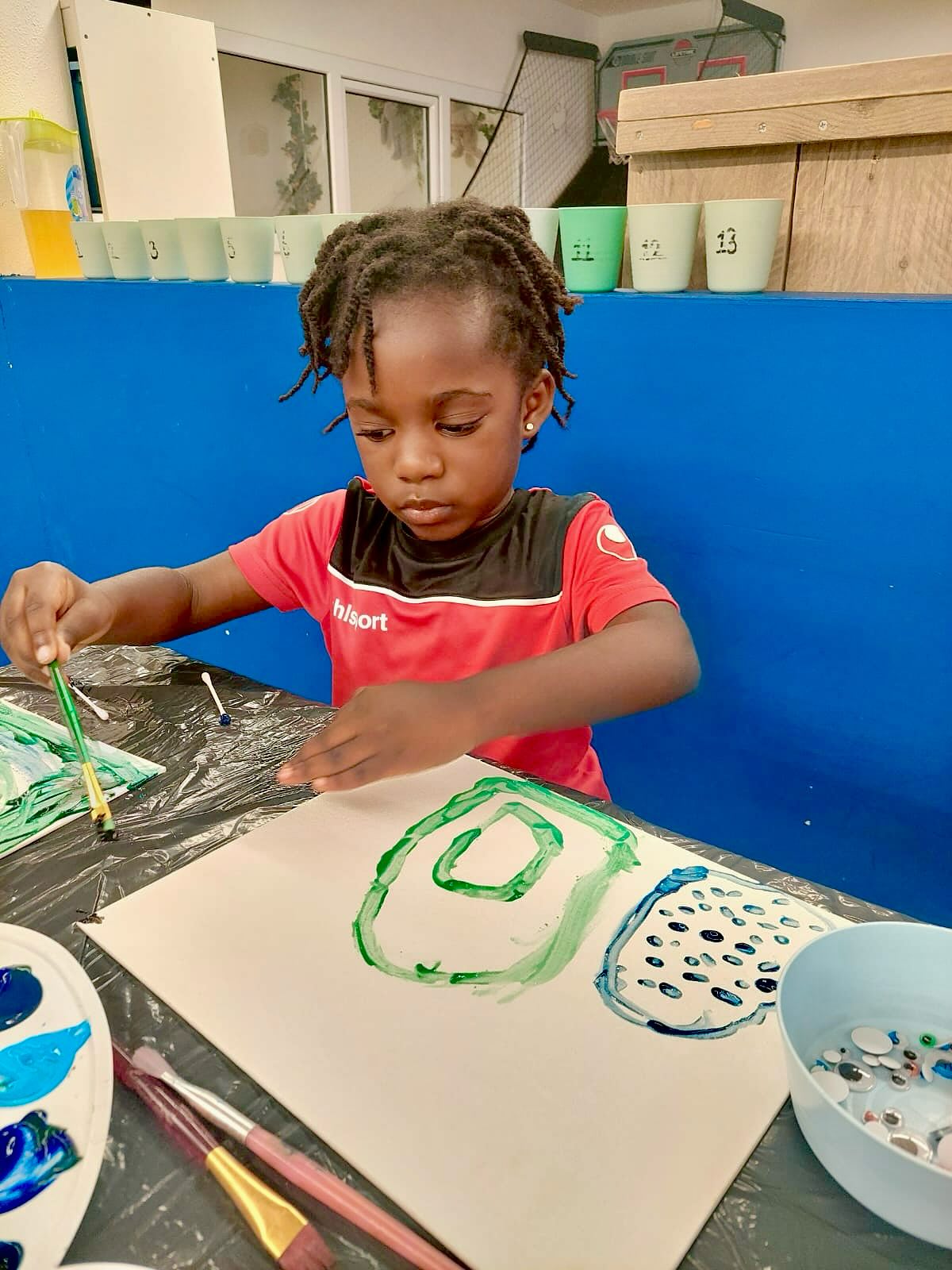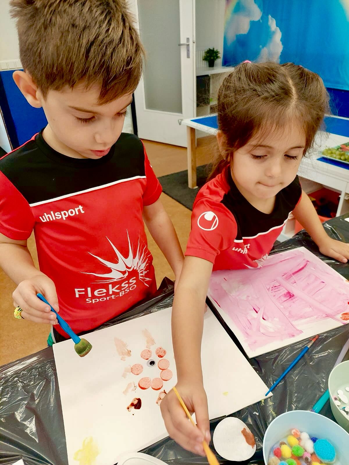 Vandaag waren we allemaal kunstenaars 👩🎨👨🎨! Op een canvas maakten we een echt kunstwerk met verf, papier en lijm 🖌️✨.