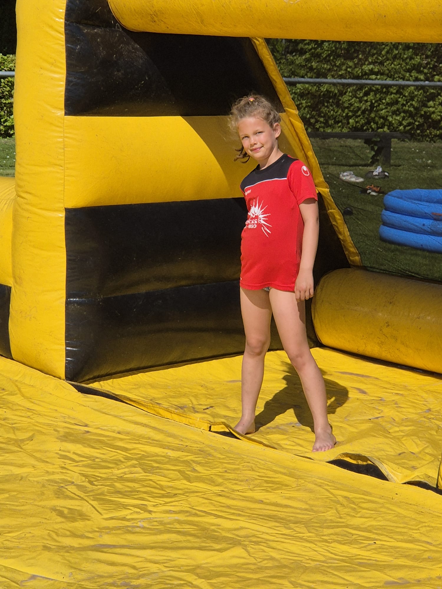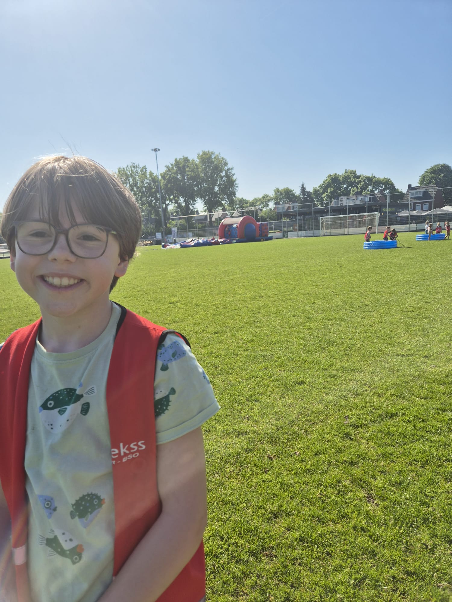 Vandaag gingen we naar het speeltuintje in de buurt. De jongens kozen net als vaker voor het voetballen op het veldje. En een paar meiden waren druk aan het kletsen op de schommel.