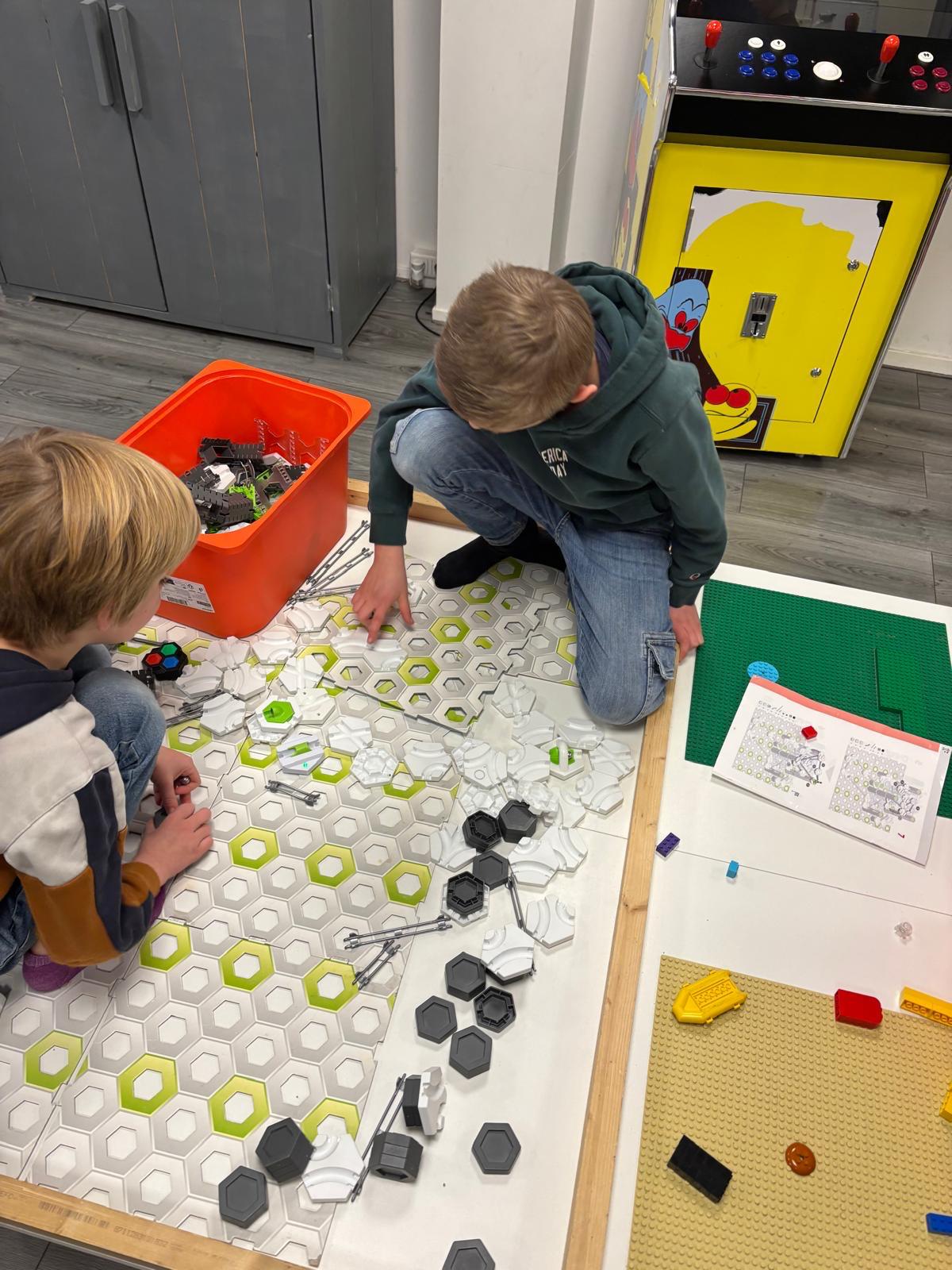 Vandaag zat het weer niet mee. De regen kwam met bakken uit de lucht en tot overmaat van ramp was de gymzaal bezet door sport BSO Flekss Mathenesse 1. Hierdoor moesten we improviseren en ons opsplitsen over beide locaties. Gelukkig lieten de kinderen zich niet uit het veld slaan en werd er binnen net zo enthousiast gespeeld en geknutseld. We haalden de klei tevoorschijn en bouwden samen een indrukwekkende knikkerbaan. De kinderen waren enorm creatief en dachten goed na over hoe de knikker zo lang mogelijk kon blijven rollen. Daarnaast werden er grote torens gebouwd met magneten, wat zorgde voor veel plezier en teamwork. Ondanks de regen werd het alsnog een geslaagde en gezellige dag vol creativiteit en spel!