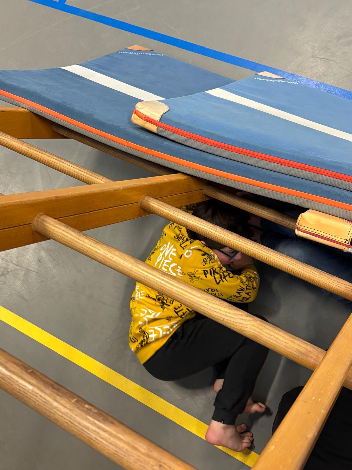 Vandaag stond de gymzaal weer op de planning, en met het onstuimige weer deze week was dat extra fijn! De kinderen kozen ervoor om 10 tellen in de Rimboe te spelen, een klassiek en geliefd spel. Wat deze keer extra bijzonder was, is dat de kinderen zelf het spel wilden klaarzetten. Dit gaf hen de mogelijkheid om het spel in te richten zoals zij dat graag wilden, wat een prachtig voorbeeld van kinderparticipatie is. Ze werkten samen, bedachten slimme verstopplekken en zorgden ervoor dat de spelregels eerlijk werden nageleefd. Het was mooi om te zien hoe enthousiast en betrokken ze waren!