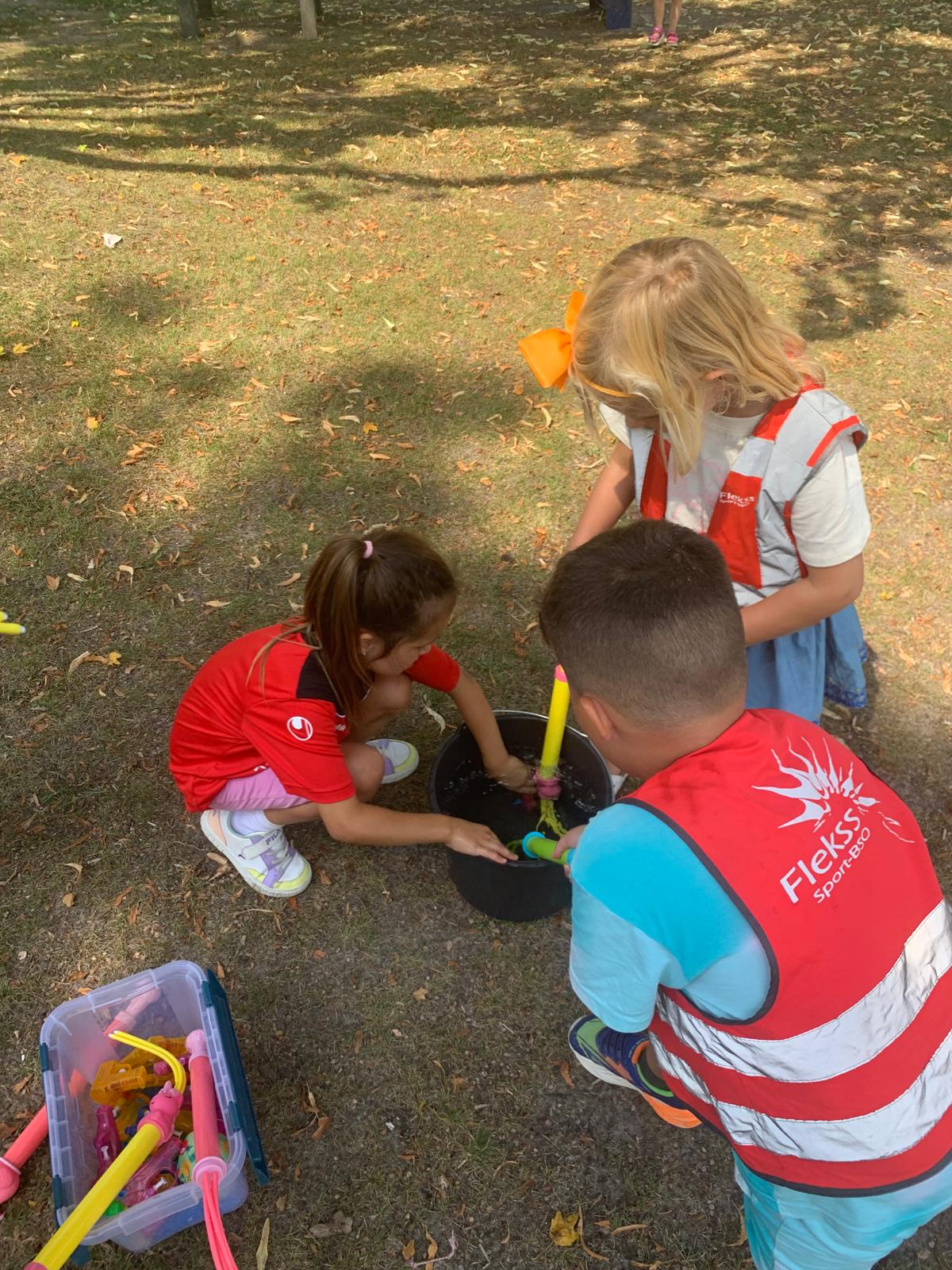 Na de lunch werd de groep in tweeën gesplitst: de ene helft speelde met water in de speeltuin, de andere helft bleef binnen. Later wisselden we om en sloten we de dag af met een lekker waterijsje.