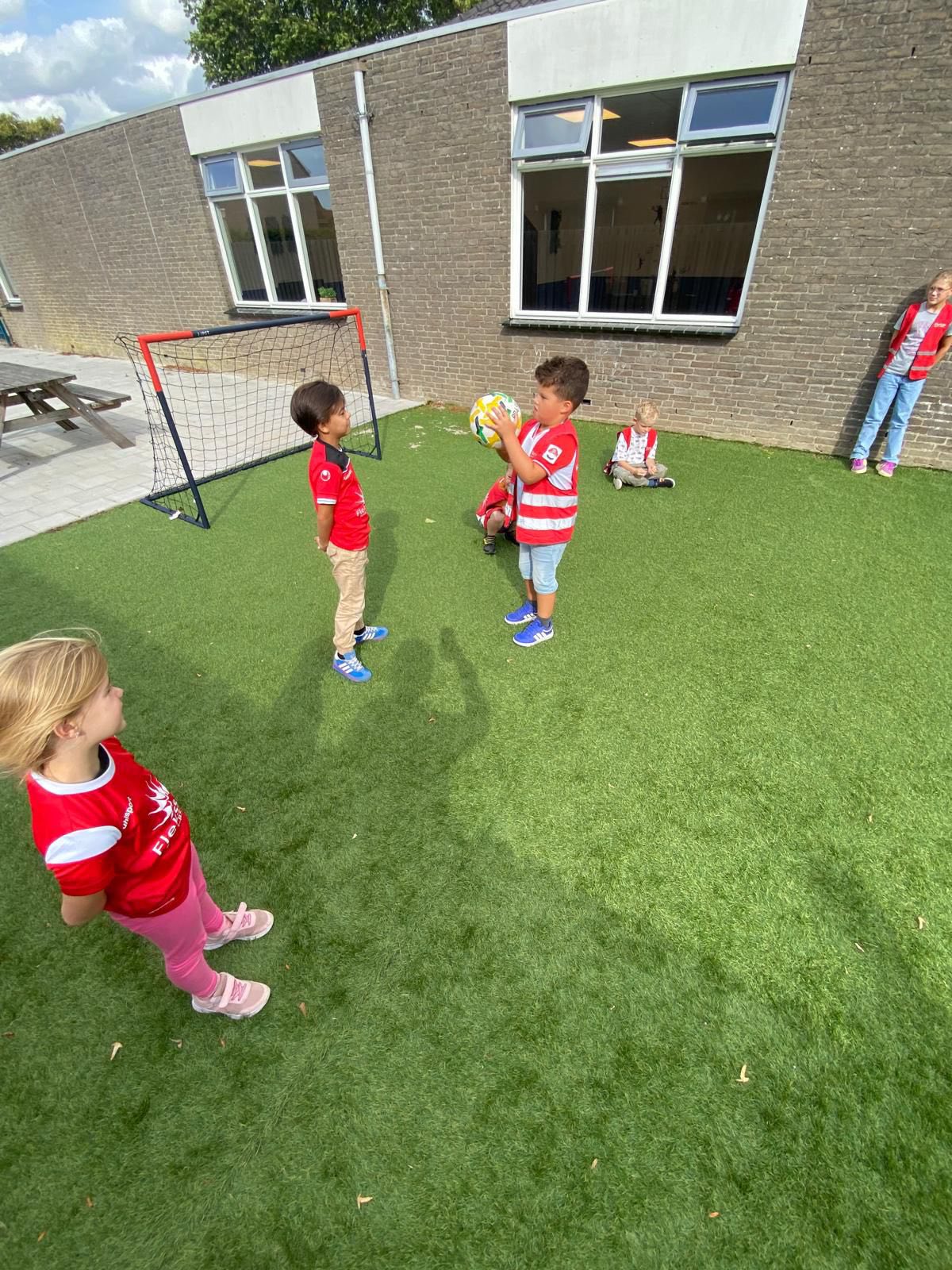 Na het eten van fruit en een koekje 🍎🍪 en een glaasje ranja 🍹 gingen we met z’n allen op pad naar de speeltuin. Daar stond een sportief parcours klaar waar de kinderen volop konden klauteren, rennen en springen. Iedereen moedigde elkaar enthousiast aan en sommige kinderen deden het parcours wel drie keer achter elkaar! 💪 Daarna gingen we in de tuin verder met verschillende sporten: van voetbal en tikkertje tot estafettes. Er werd flink gerend en gelachen in het zonnetje.