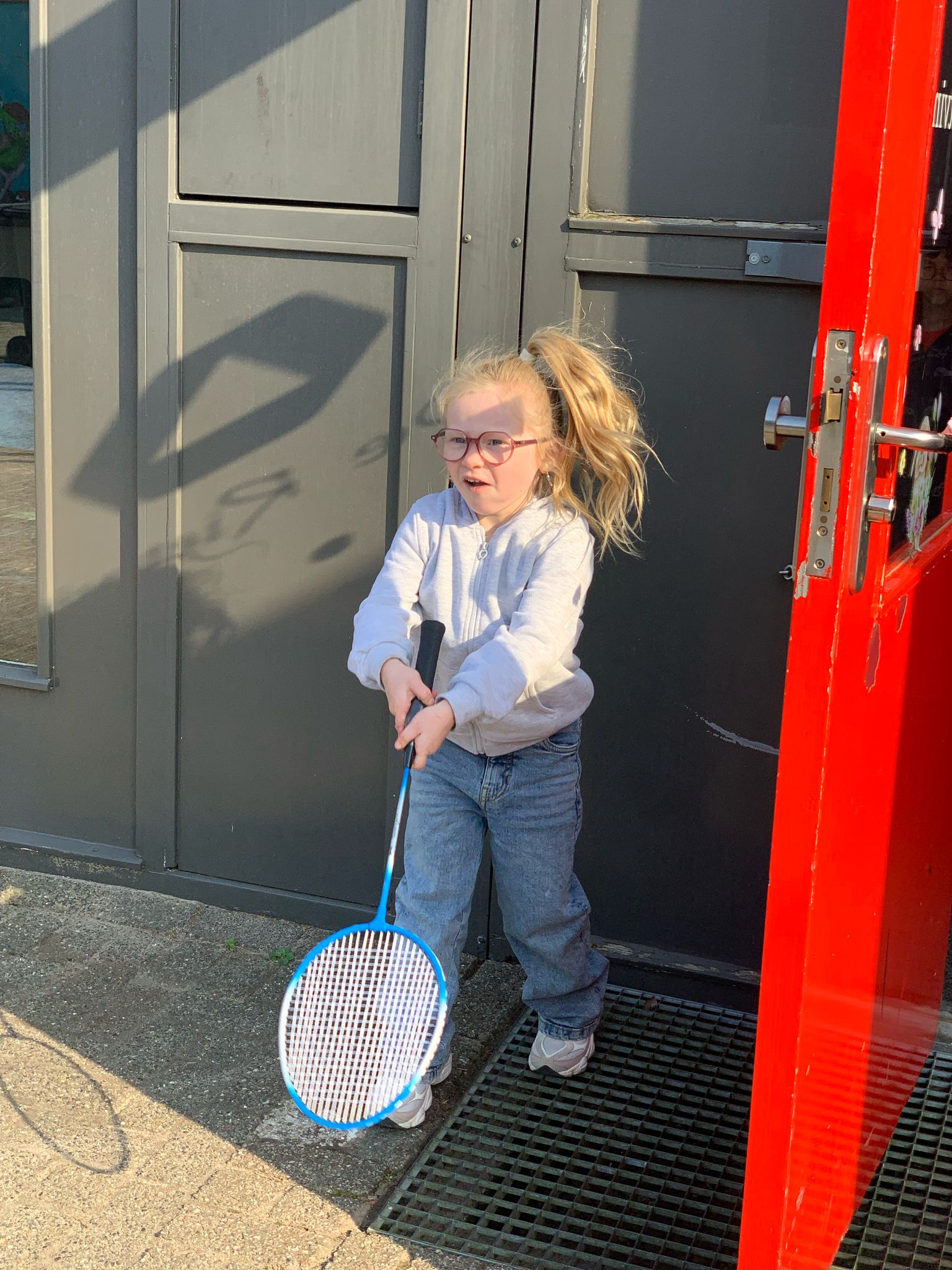 Maandag: Vandaag kregen we super leuk nieuw speelgoed om buiten mee te spelen. Zo hebben we super leuk badminton 🏸 gespeeld, met nieuwe ballen 🎾 gespeeld en getennist. Na het fruit 🍎 eten hebben we met elkaar gewisseld waardoor iedereen met de nieuwe leuke materialen heeft kunnen spelen! Ook hebben we handstanden geoefend met elkaar, meester Alexander kan dat al heel goed! Het was een goed begin van de week! 🤩☀