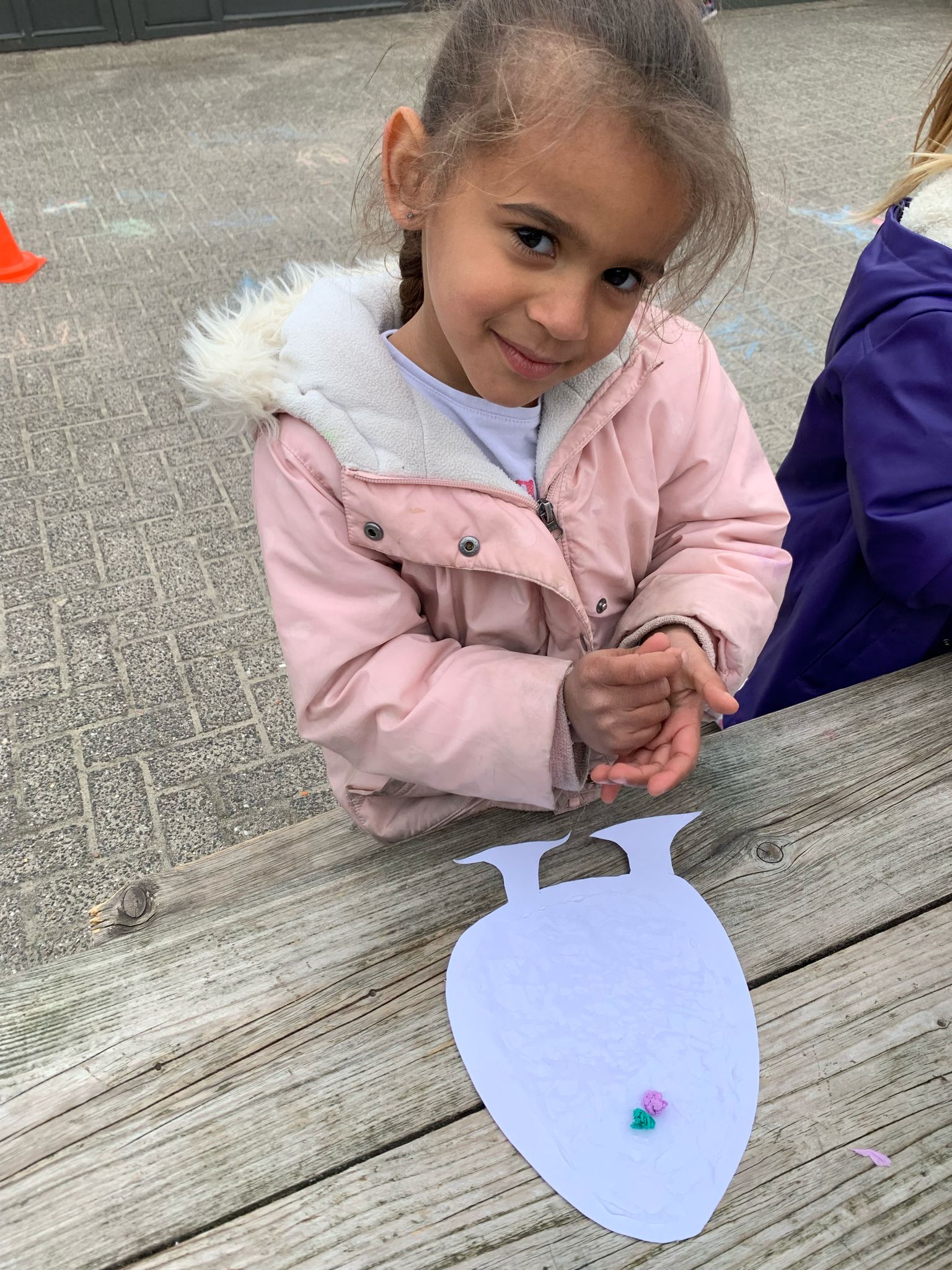 Donderdag: Vandaag hebben we gezellig buiten gespeeld, buiten geknutseld, buiten fruit 🍇gegeten en binnen gegymd. We hebben met verf leuke lente tekeningen gemaakt. Met vorken probeerden we tulpen te maken met verschillende mooie lente kleuren! 🤩 Omdat we buiten in het zonnetje bleven hebben we iedereen voor het fruit eten ook even ingesmeerd met zonnebrand. Tijdens het gymmen met grote broer grote zus hebben verschillende vormen van tikkertje gespeeld en een zittend voetbal ⚽ spel. Iedereen vond het super!