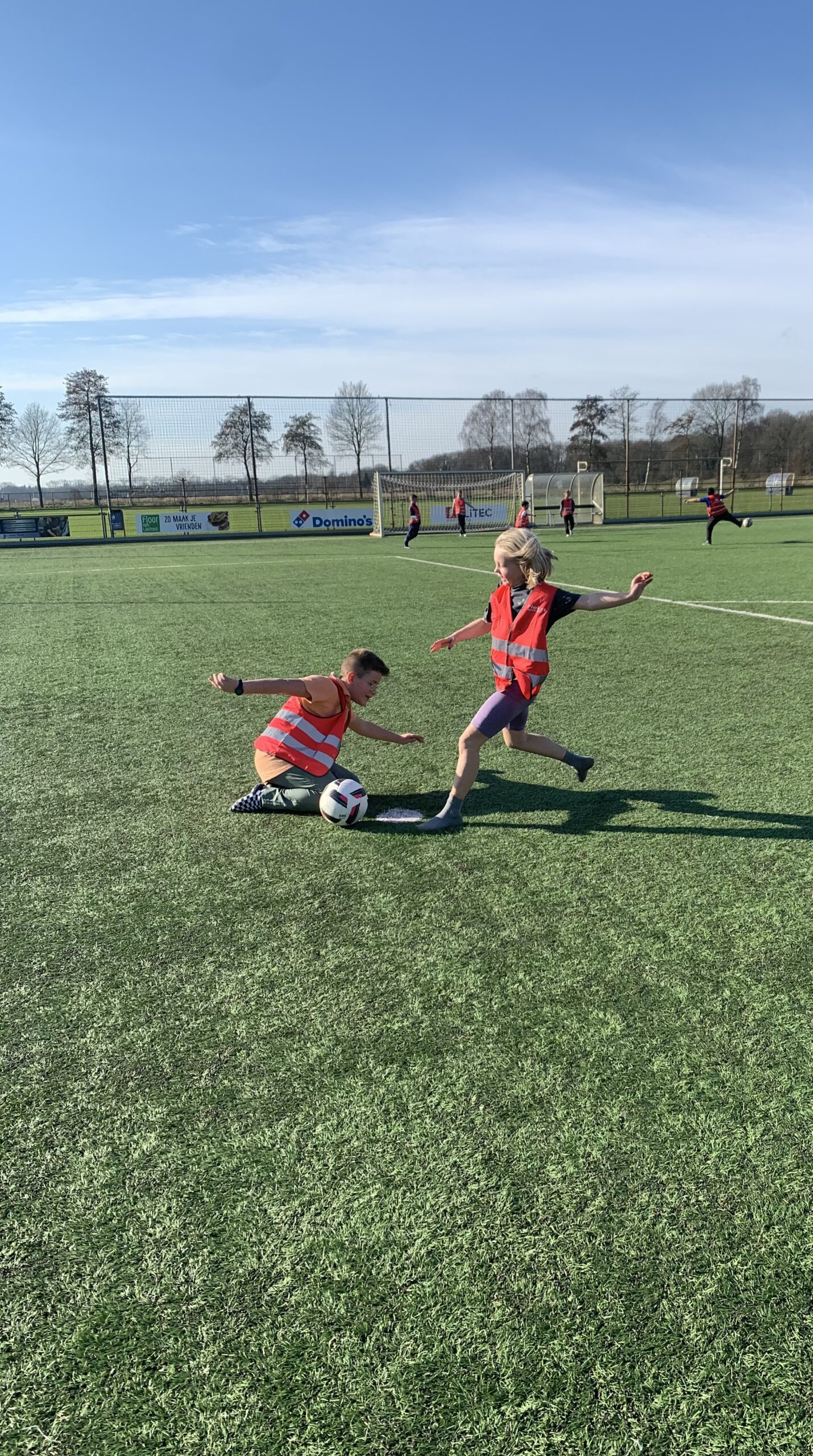 Naast de sportieve momenten in de gymzaal hebben we ook genoten van het mooie weer. Op een aantal dagen hebben we daarom extra veel buiten gespeeld op het sportpark bij RKDVC. De kinderen hebben lekker gevoetbald op het veld en gespeeld in de speeltuin. Doordat het zo’n fijne zonnige dag was, hebben we er zelfs voor gekozen om de gymzaal een keer in te ruilen voor de voetbalvelden buiten.