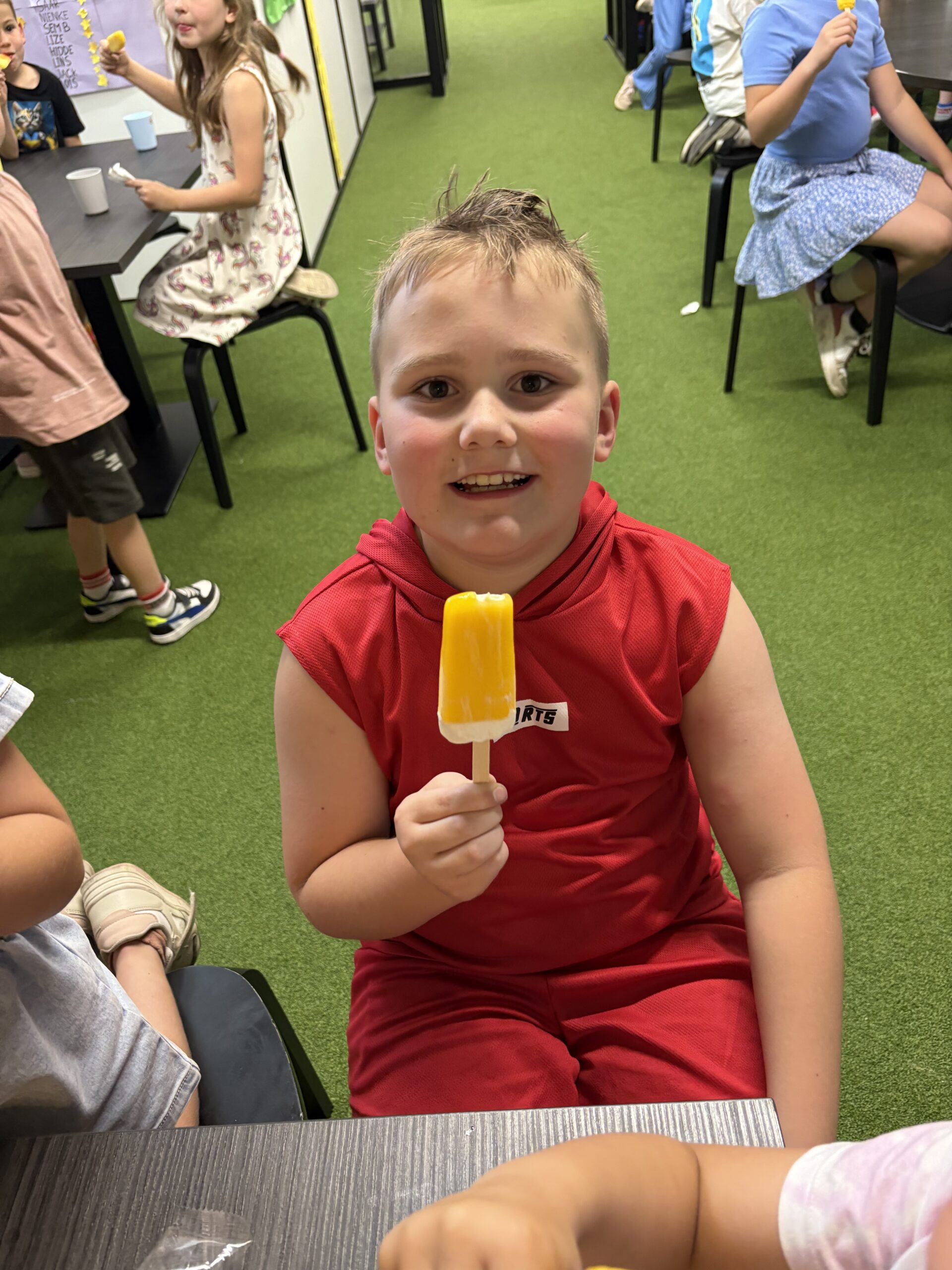 Woensdag maakten we er opnieuw een feestje van. We lunchten samen bij de BSO in Raamsdonksveer, en omdat het zonnetje volop scheen, besloten we lekker naar buiten te gaan voor een verfrissend watergevecht. Als verrassing kregen we ook nog een ijsje, de perfecte afsluiter van een zomerse middag. Einde van de middag gingen we terug naar Geertruidenberg, waar we nog even fruit aten en speelden in de speeltuin.