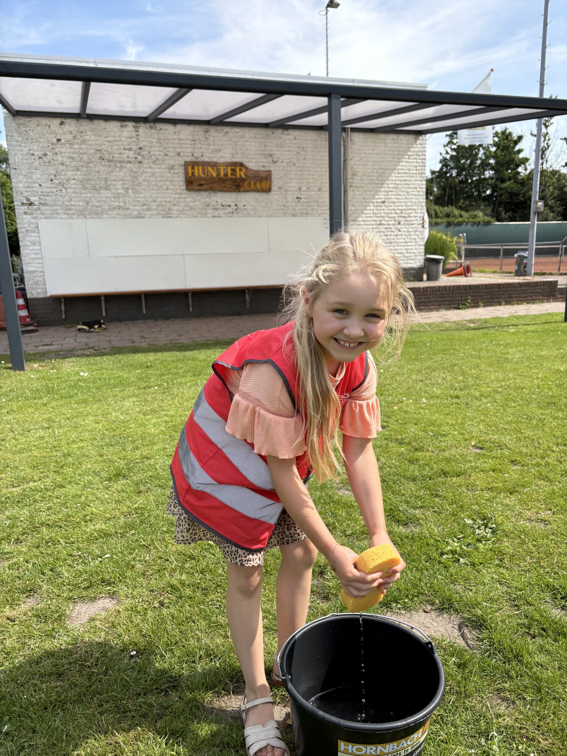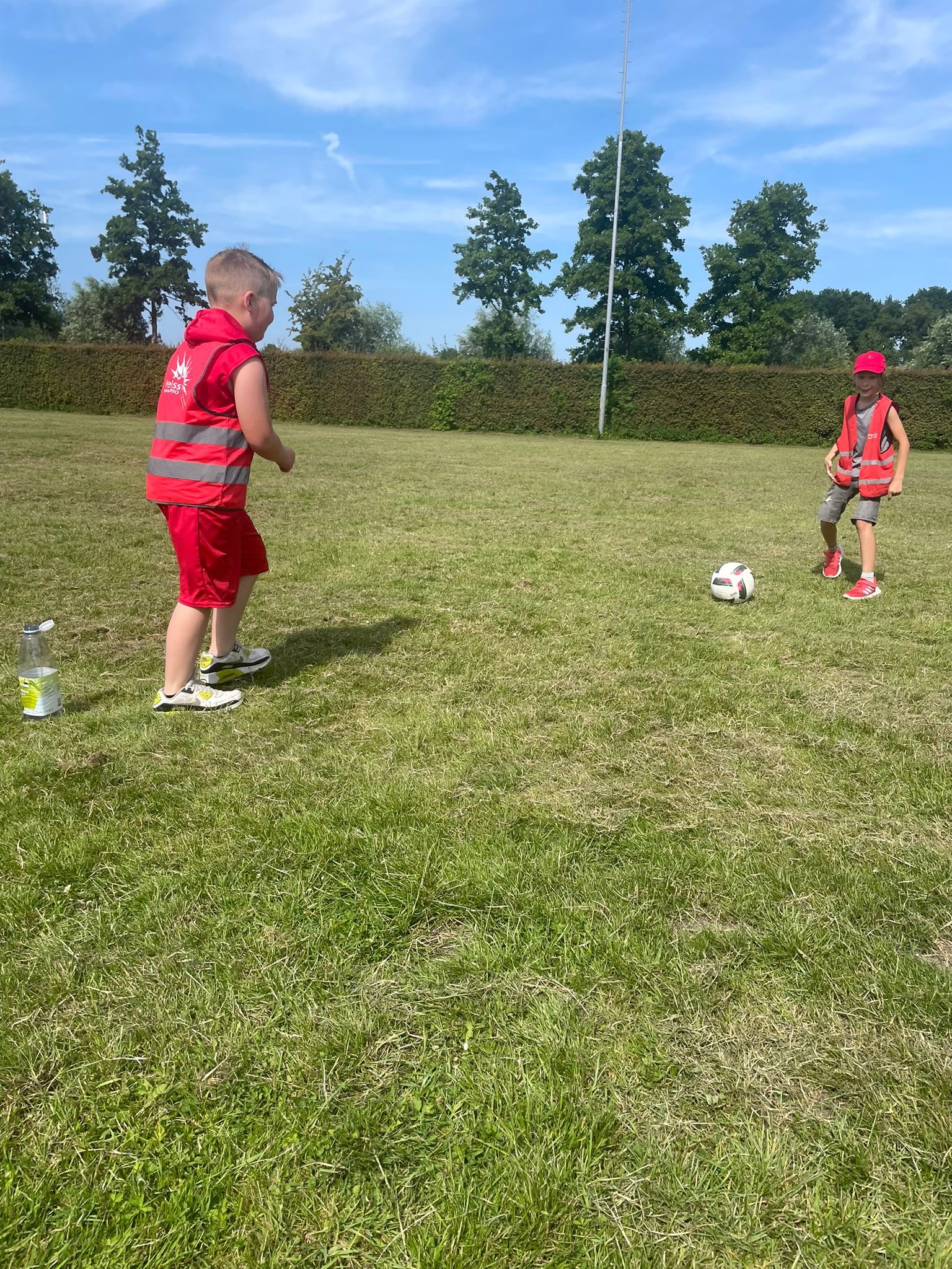 Donderdag werden de sportkleren weer aangetrokken, want het was tijd voor een actieve dag op Sportpark Hier-O. Daar deden we leuke wateractiviteiten zoals flessenvoetbal en een sponsen-estafette. Iedereen deed supergoed mee en er werd veel gelachen en gespetterd. En alsof dat nog niet genoeg was: we hadden ook een jarige in ons midden, die trakteerde op ijs. Precies wat we nodig hadden met dat heerlijke weer.