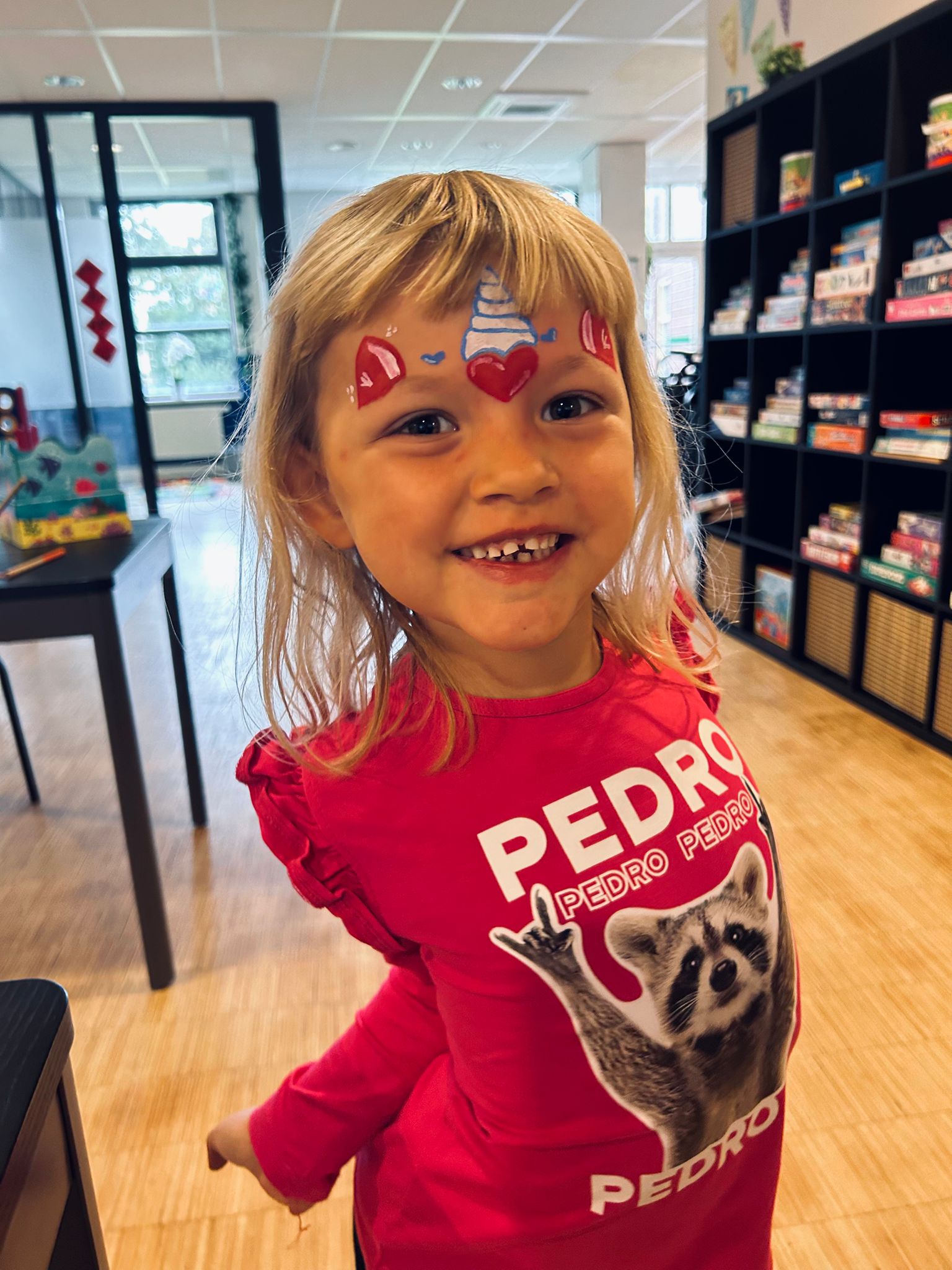 We zijn ’s ochtends naar BSO Flekss, locatie Dillehof gegaan. Daar hebben de kinderen vrij gespeeld en heeft juf Indy iedereen geschminkt: Spider-Man, leeuwen, eenhoorns, katjes en honden… 🐯🐶🐱