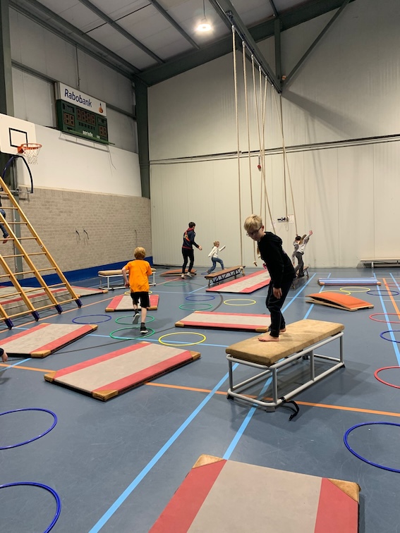 Dinsdag zwaaiden we enthousiast aan de ringen en trapeze, speelden we fanatiek bankenvoetbal ⚽ en renden we rond bij lijnentikkertje.