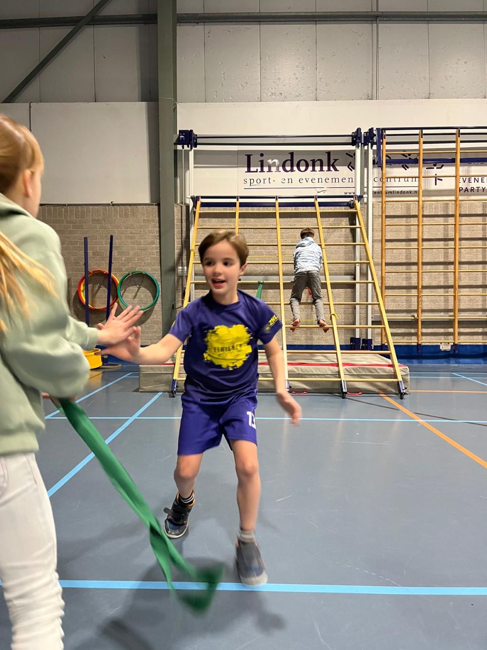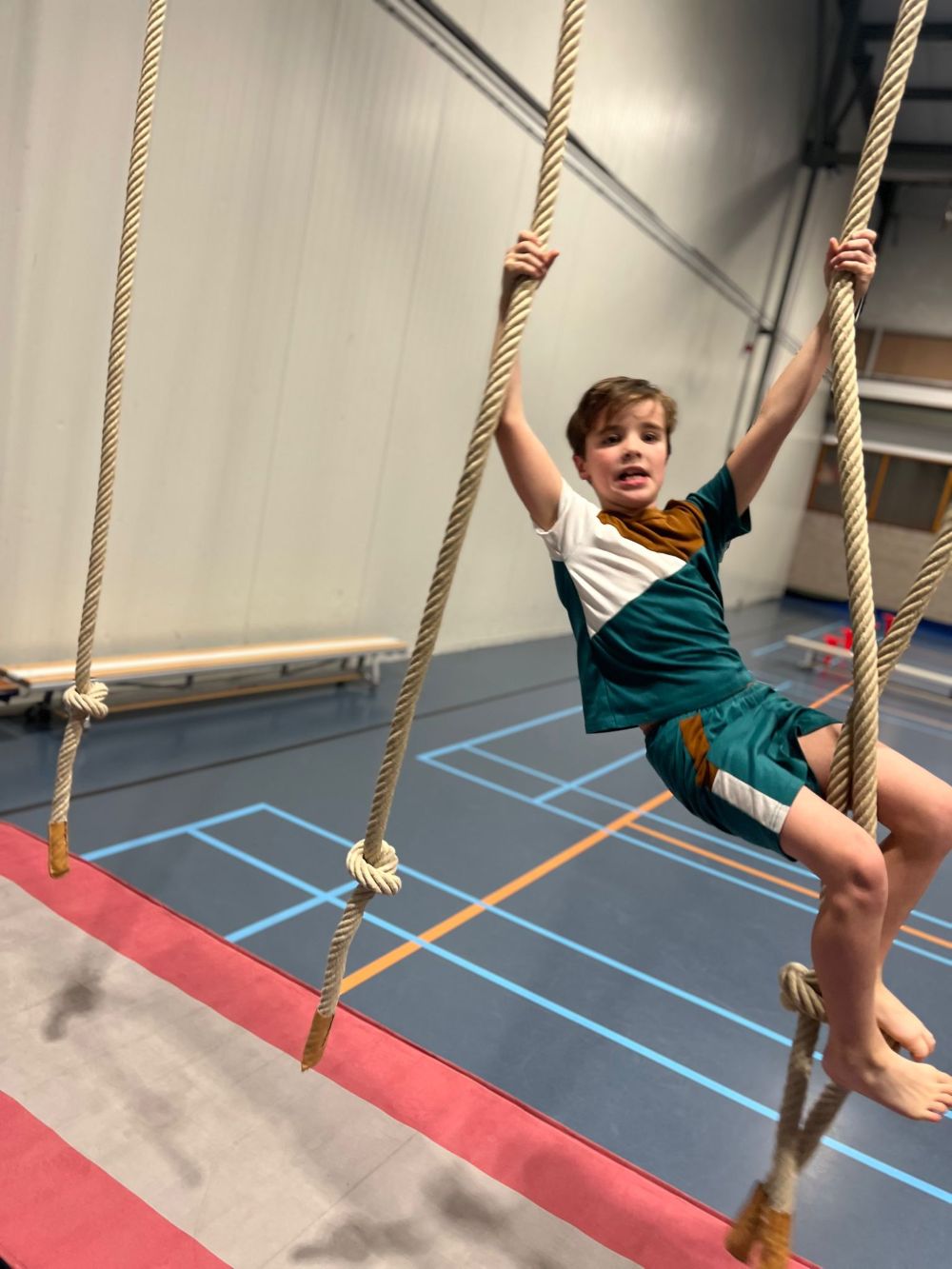 Ook hebben we een uitdagend klimparcours gedaan, waarbij we moesten klimmen, klauteren en goed samenwerken. Daarnaast hebben we gespeeld met een grote yogabal, waarbij we probeerden te scoren op een dikke mat.⚽😆