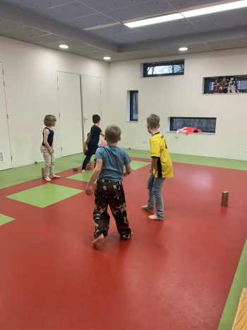 Na een frisse start buiten en een lekker fruitmoment, splitsten we de groep op voor het sportgedeelte in de gymzaal.